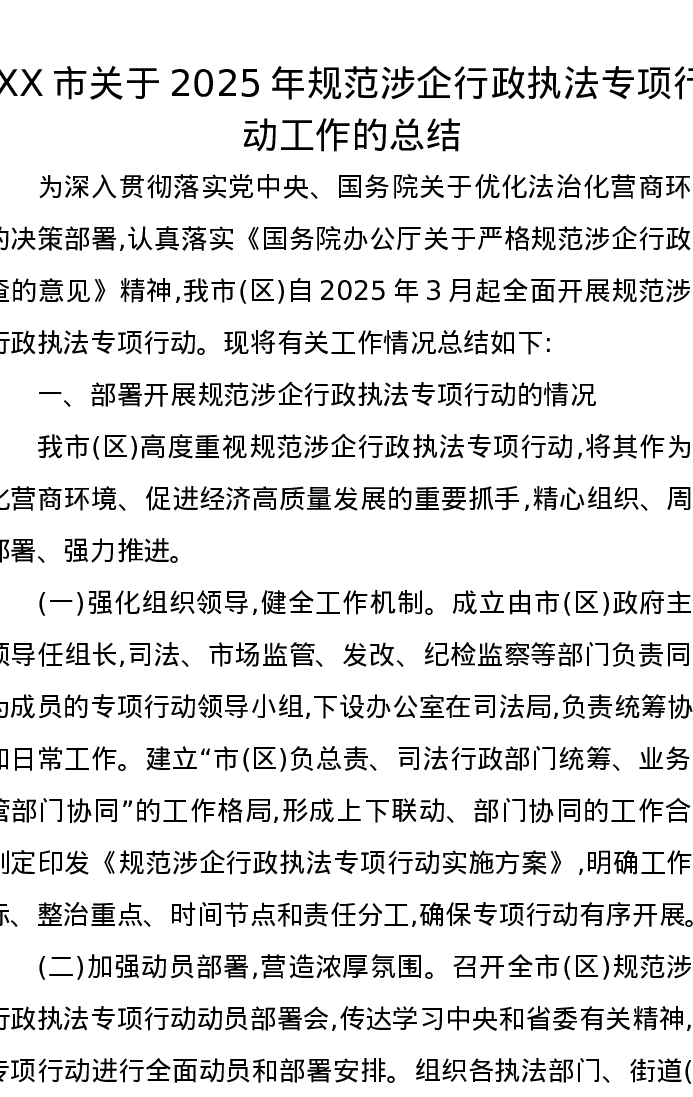 XX市关于2025年规范涉企行政执法专项行动工作的总结