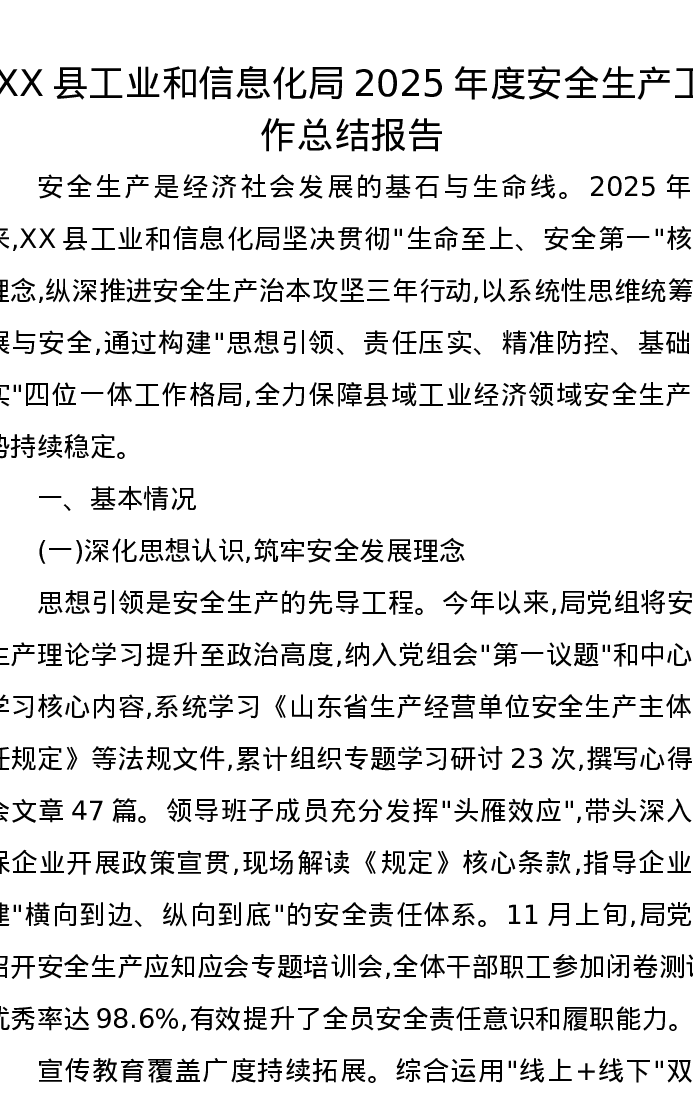 XX县工业和信息化局2025年度安全生产工作总结报告