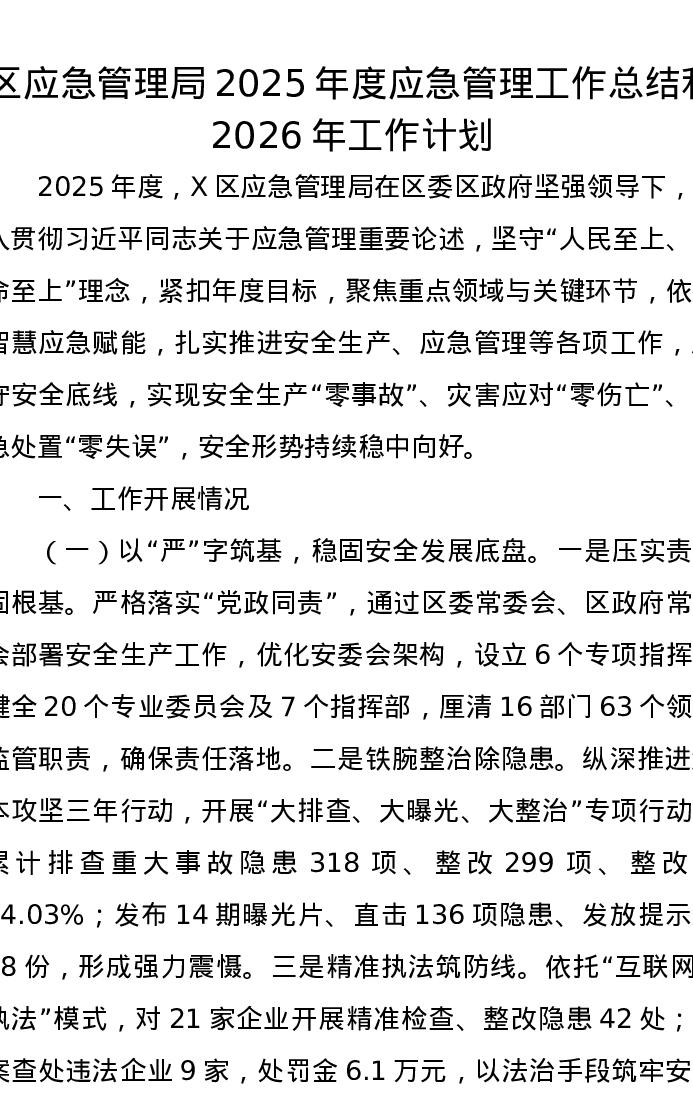 区应急管理局2025年度应急管理工作总结和2026年工作计划