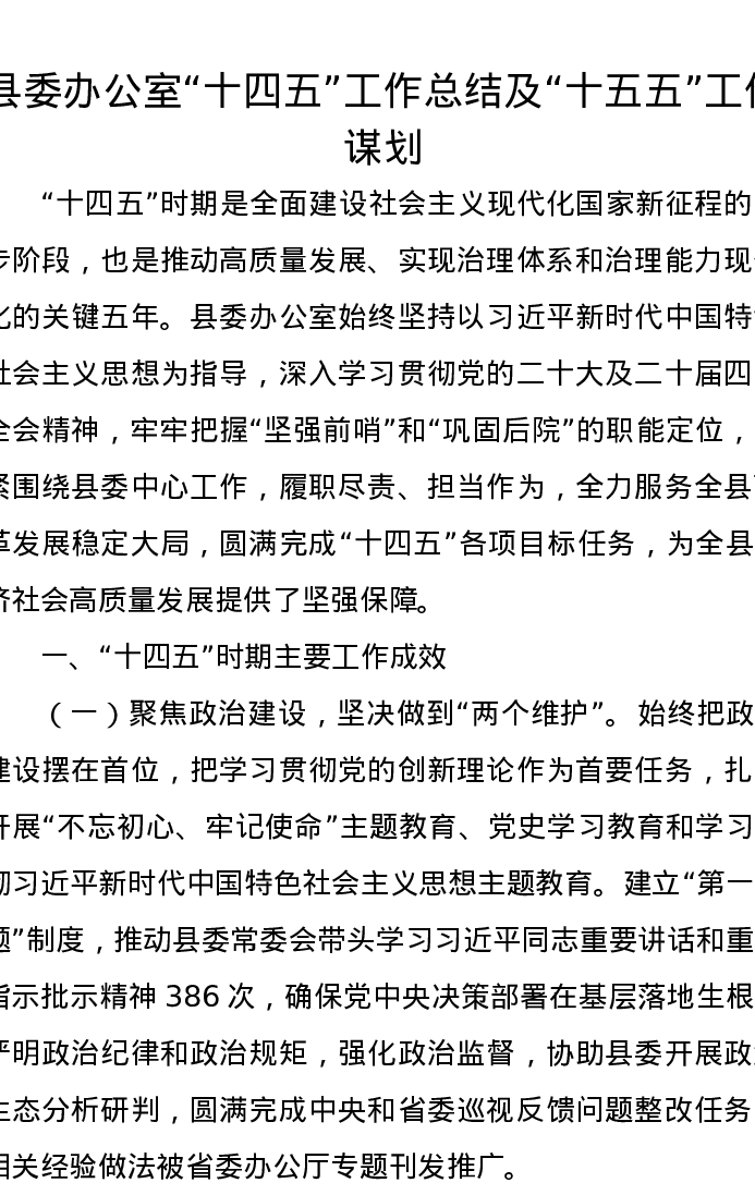 县委办公室“十四五”工作总结及“十五五”工作谋划