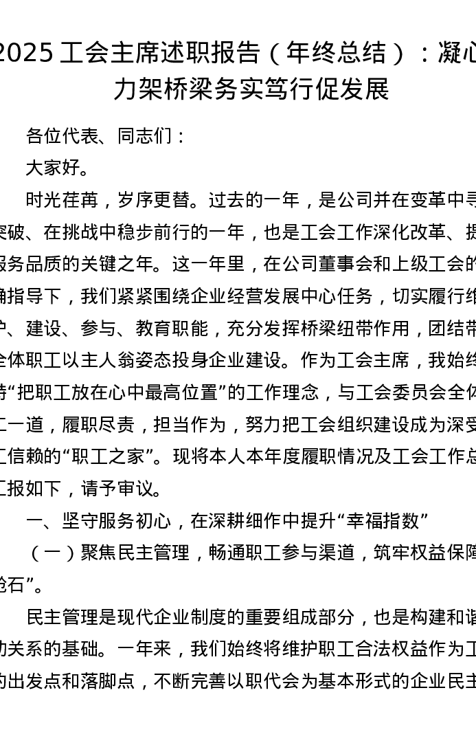 2025工会主席述职报告(年终总结):凝心聚力架桥梁 务实笃行促发展