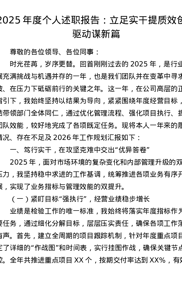 2025年度个人述职报告:立足实干提质效 创新驱动谋新篇