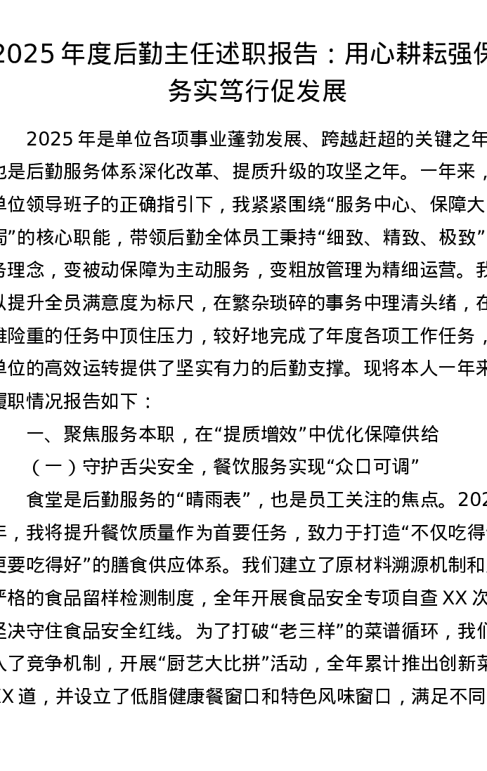 2025年度后勤主任述职报告:用心耕耘强保障 务实笃行促发展