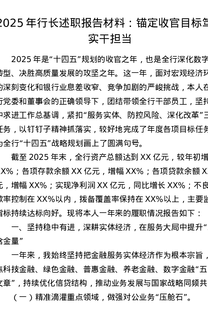 2025年行长述职报告材料:锚定收官目标 笃行实干担当