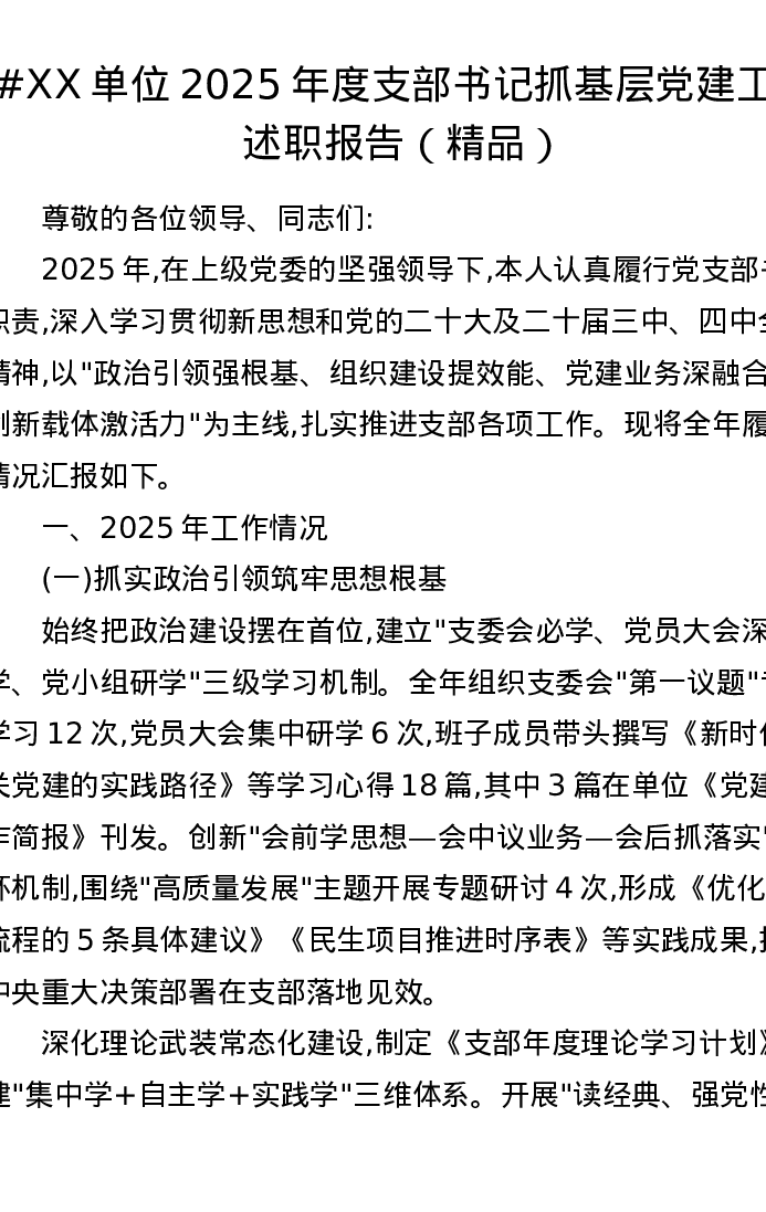 XX单位2025年度支部书记抓基层党建工作述职报告