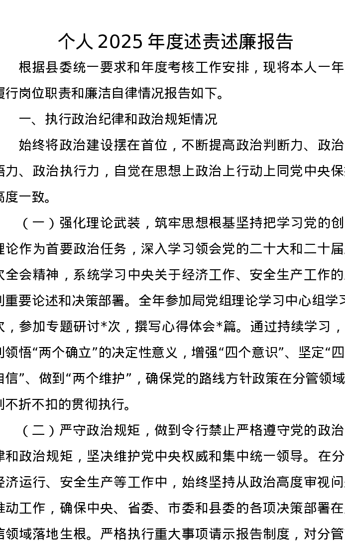 个人2025年度述责述廉报告