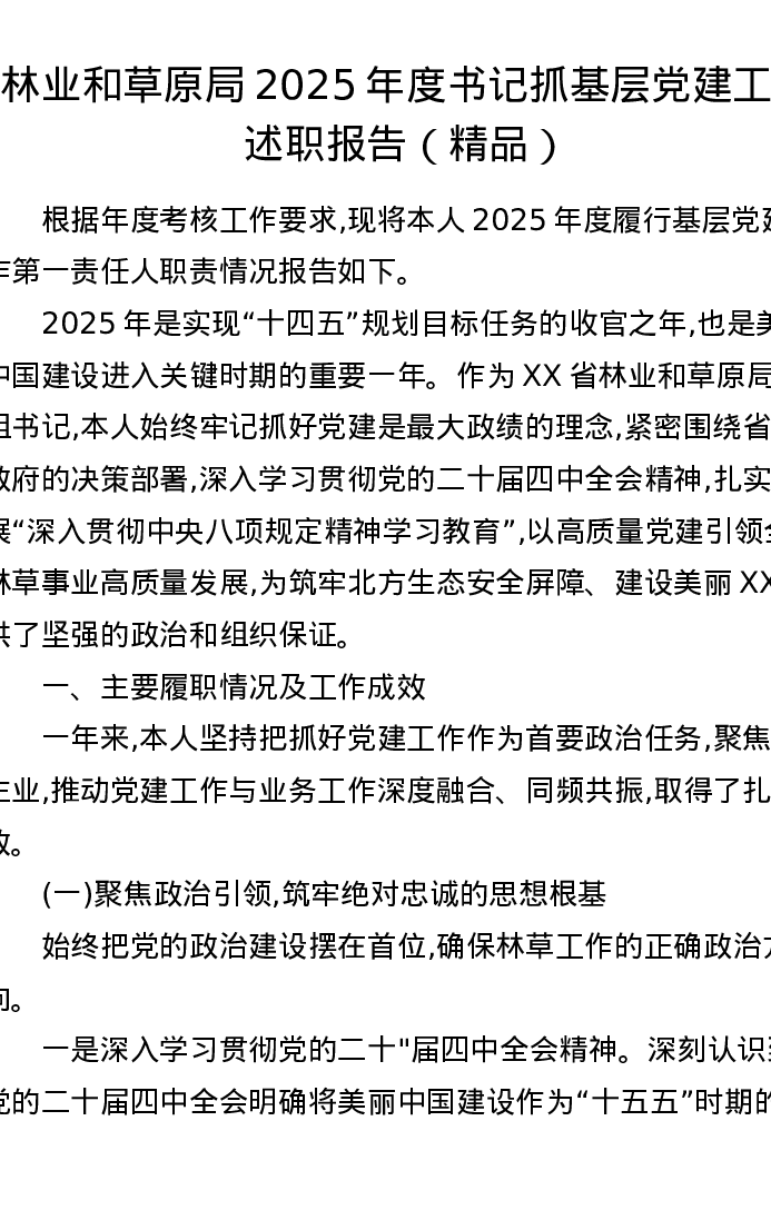 林业和草原局2025年度书记抓基层党建工作述职报告