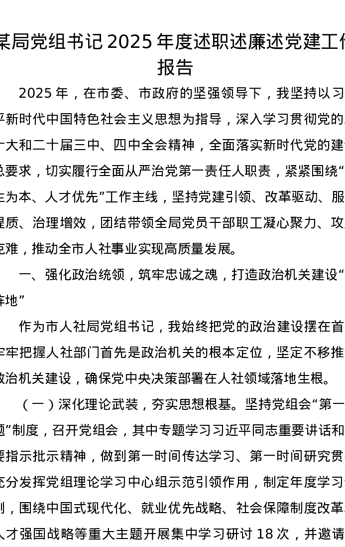 某局党组书记2025年度述职述廉述党建工作报告