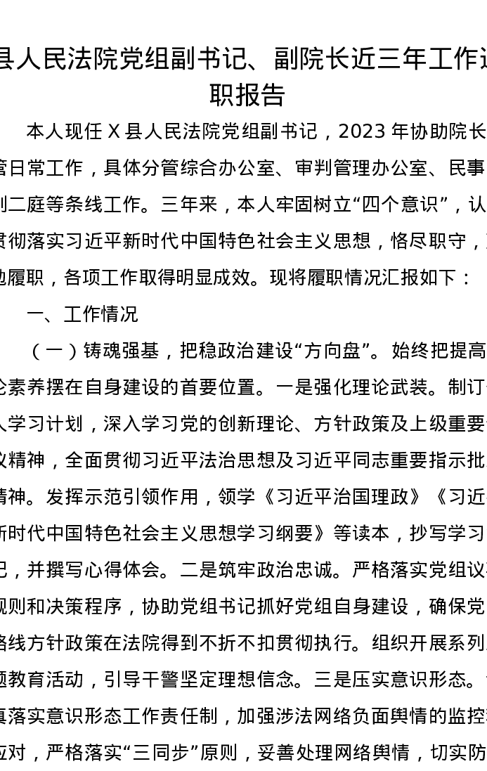 县人民法院党组副书记、副院长近三年工作述职报告
