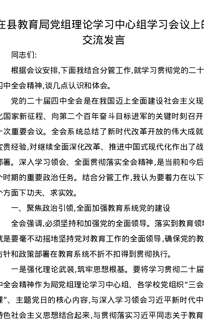 在县教育局党组理论学习中心组学习会议上的交流发言
