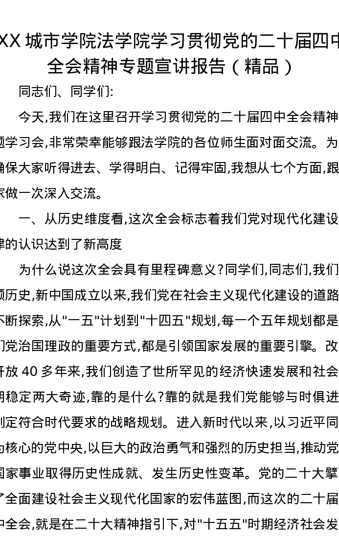 XX城市学院法学院学习贯彻党的二十届四中全会精神专题宣讲报告(精品)