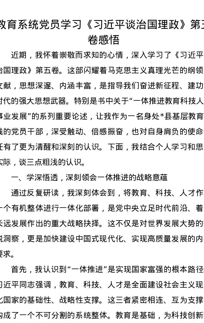教育系统党员学习《习近平谈治国理政》第五卷感悟心得
