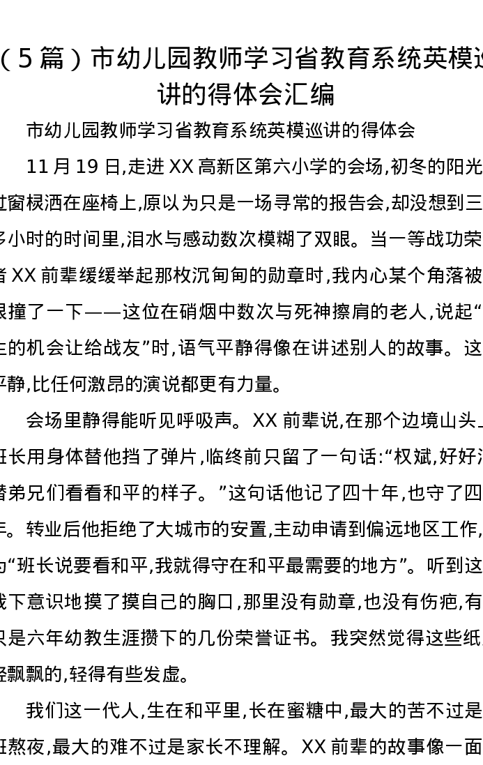 市幼儿园教师学习省教育系统英模巡讲的心得体会汇编5篇