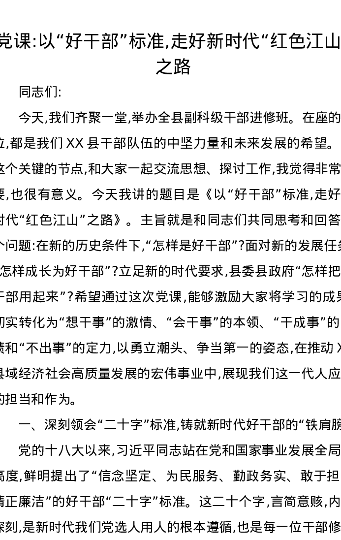 党课讲稿:以“好干部”标准,走好新时代“红色江山”之路