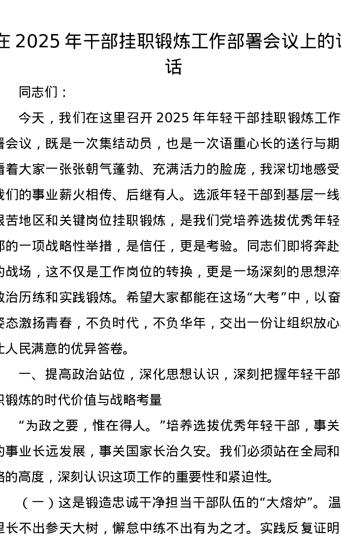在2025年干部挂职锻炼工作部署会议上的讲话