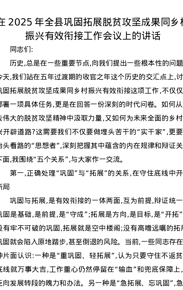 在2025年全县巩固拓展脱贫攻坚成果同乡村振兴有效衔接工作会议上的讲话