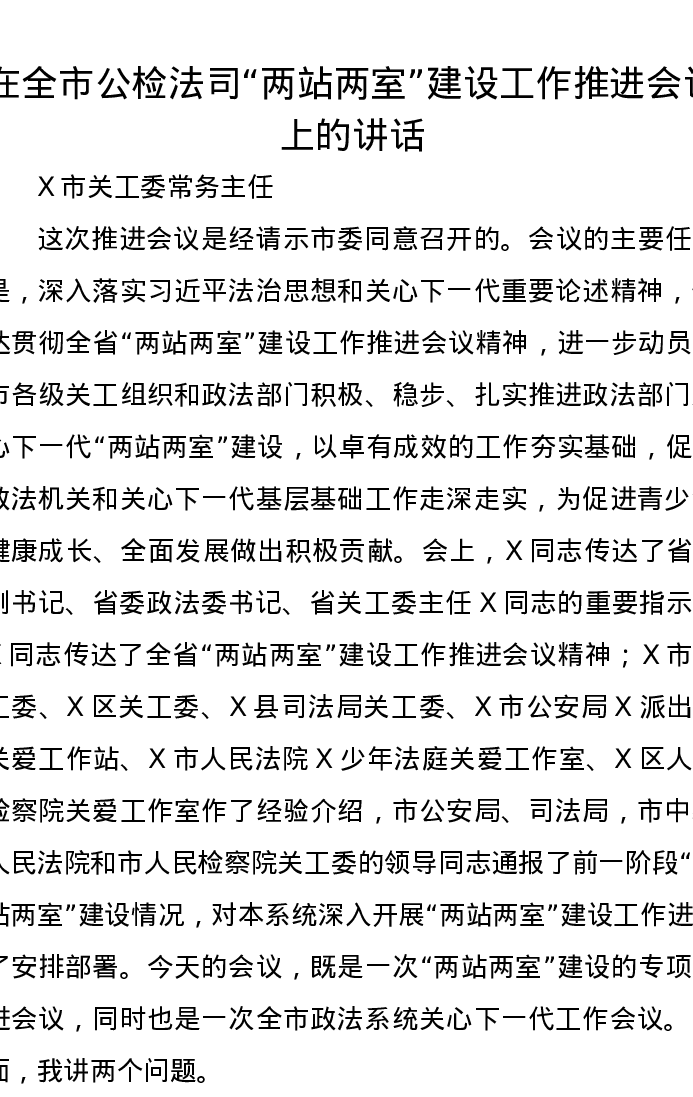 在全市公检法司“两站两室”建设工作推进会议上的讲话