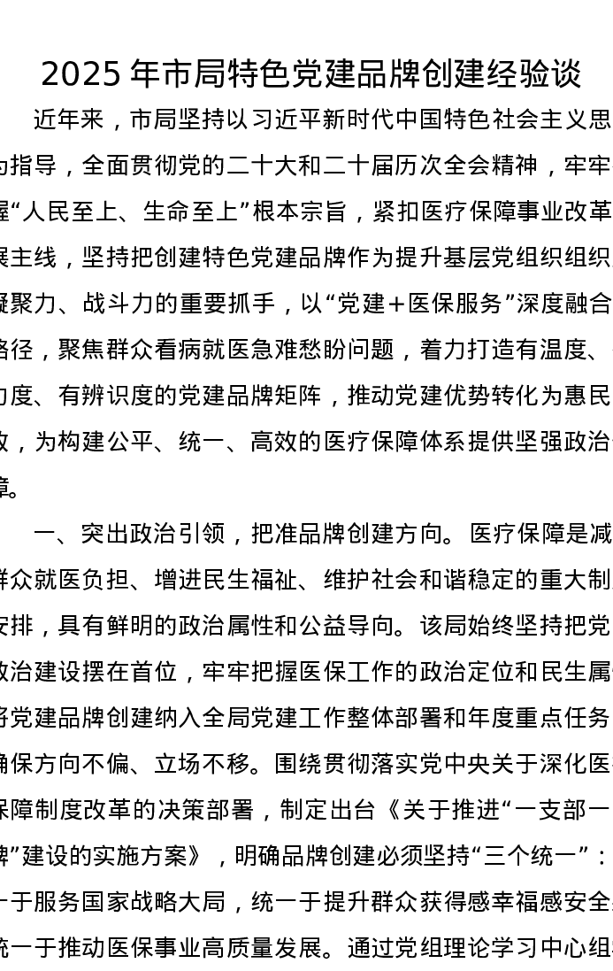 2025年市局特色党建品牌创建经验谈