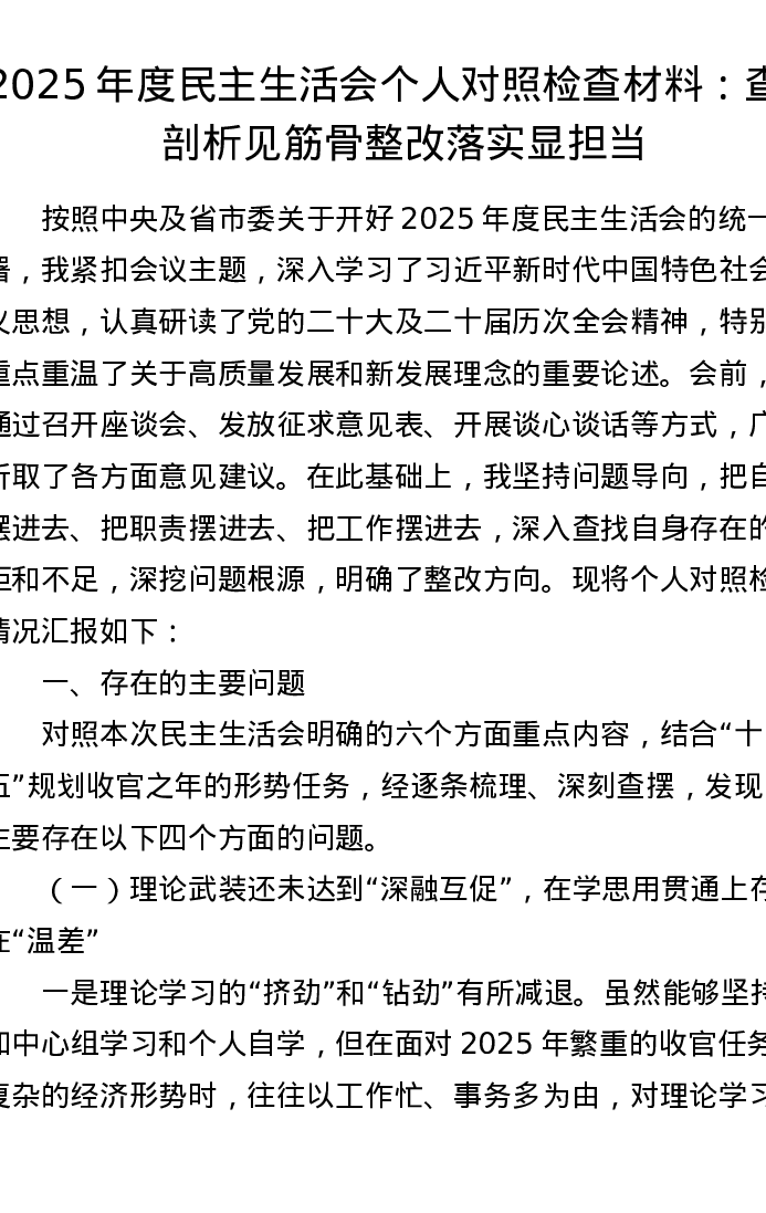 2025年度xxxxx个人对照检查材料:查摆剖析见筋骨 整改落实显担当
