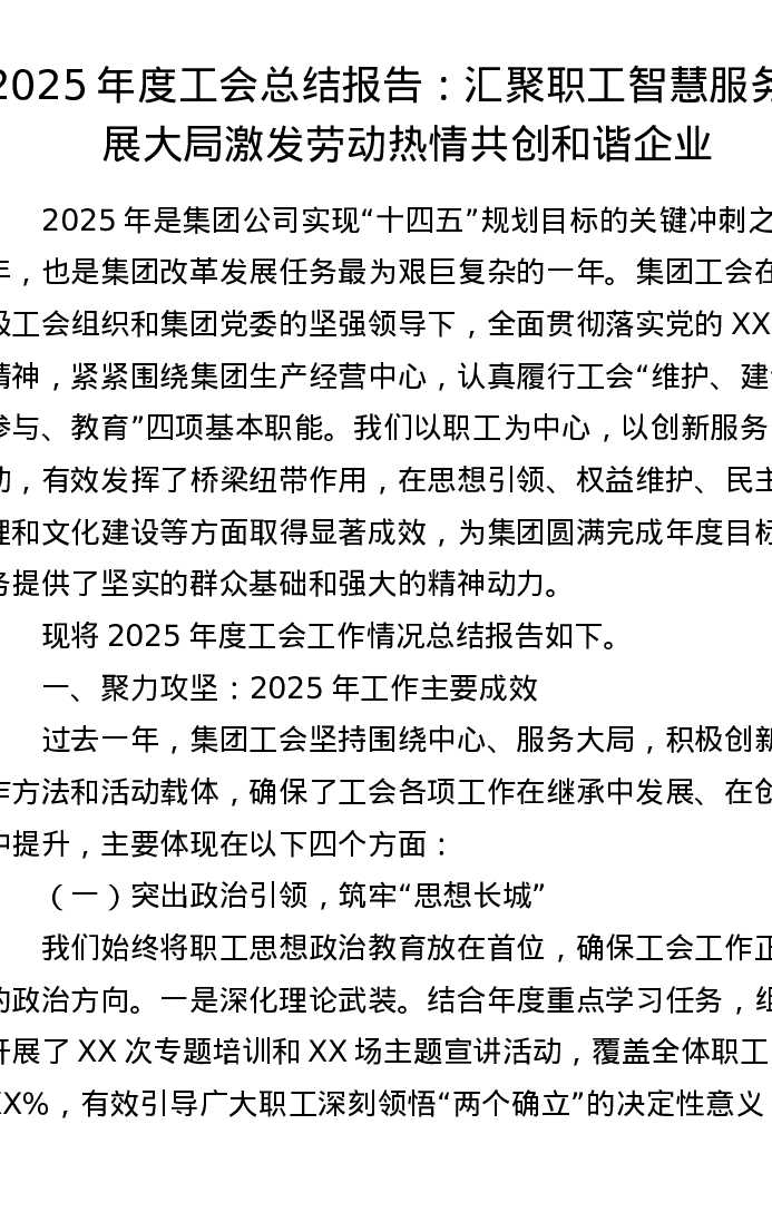 2025年度工会总结报告:汇聚职工智慧服务发展大局 激发劳动热情共创和谐企业