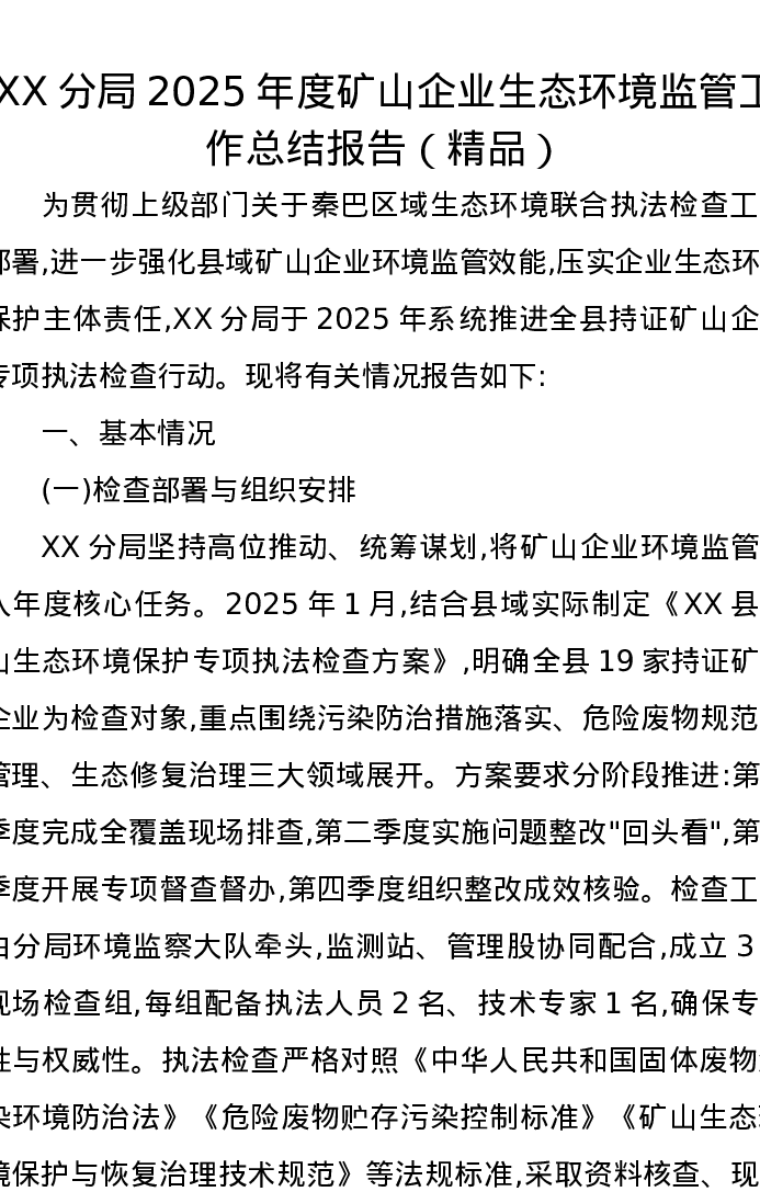 XX分局2025年度矿山企业生态环境监管工作总结报告