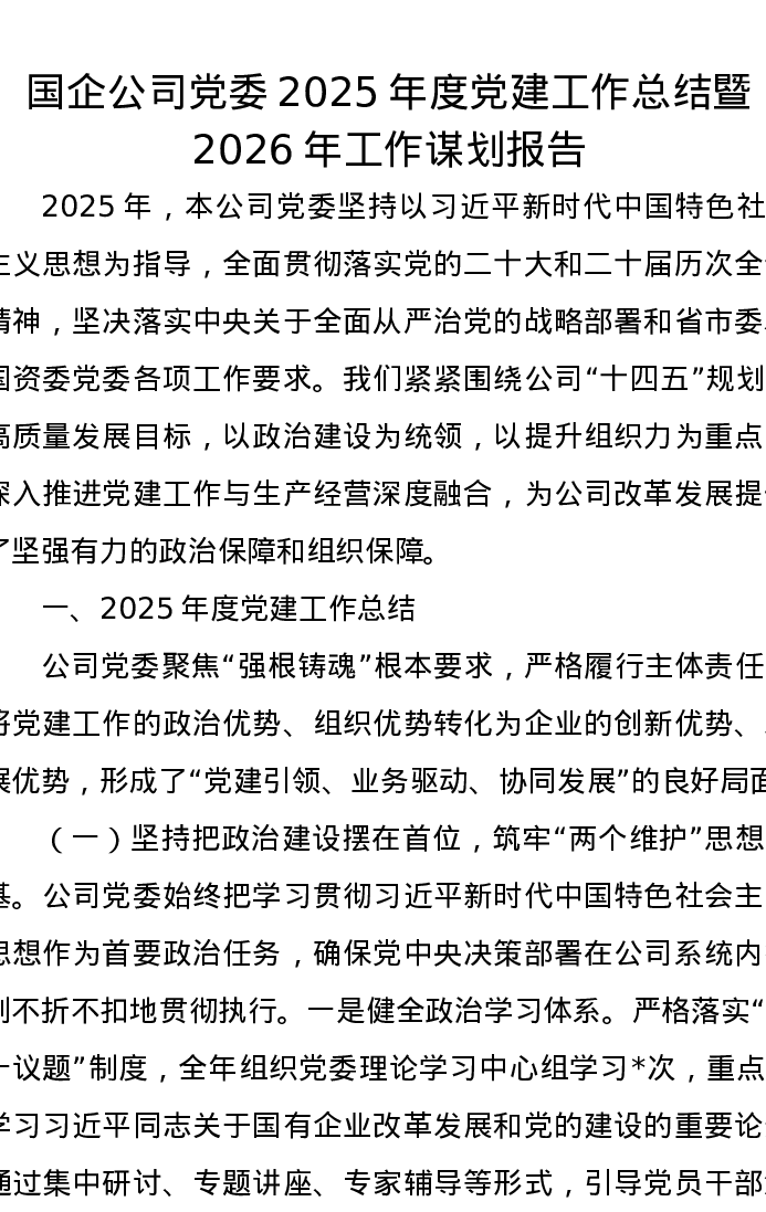 国企公司党委2025年度党建工作总结暨2026年工作谋划报告