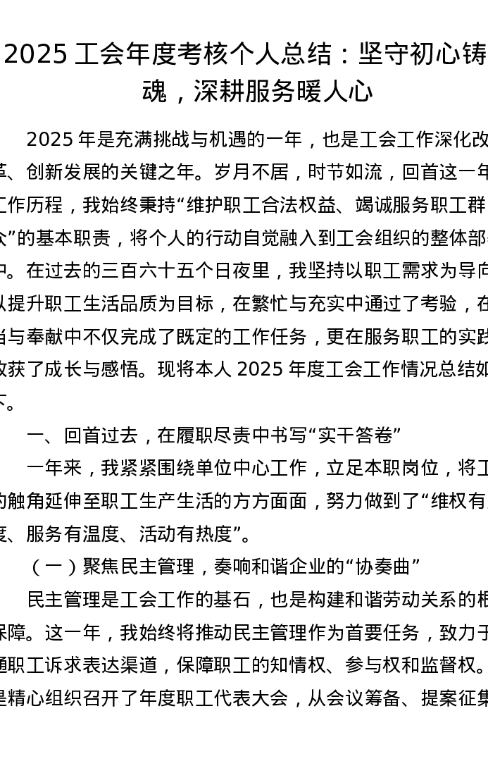 2025工会年度考核个人总结:坚守初心铸匠魂,深耕服务暖人心