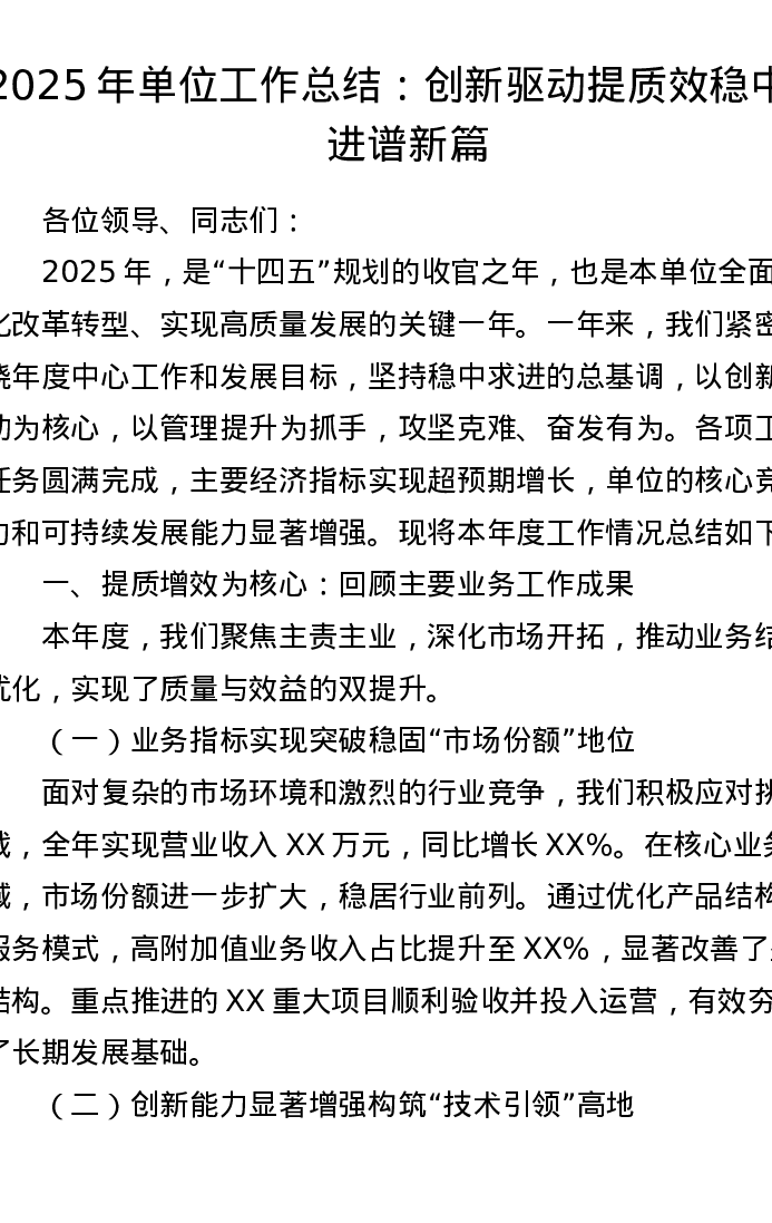 2025年单位工作总结:创新驱动提质效 稳中求进谱新篇