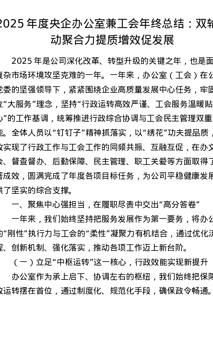 2025年度央企办公室兼工会年终总结:双轮驱动聚合力 提质增效促发展