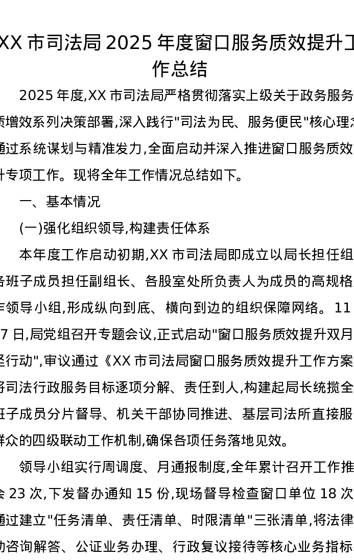 XX市司法局2025年度窗口服务质效提升工作总结