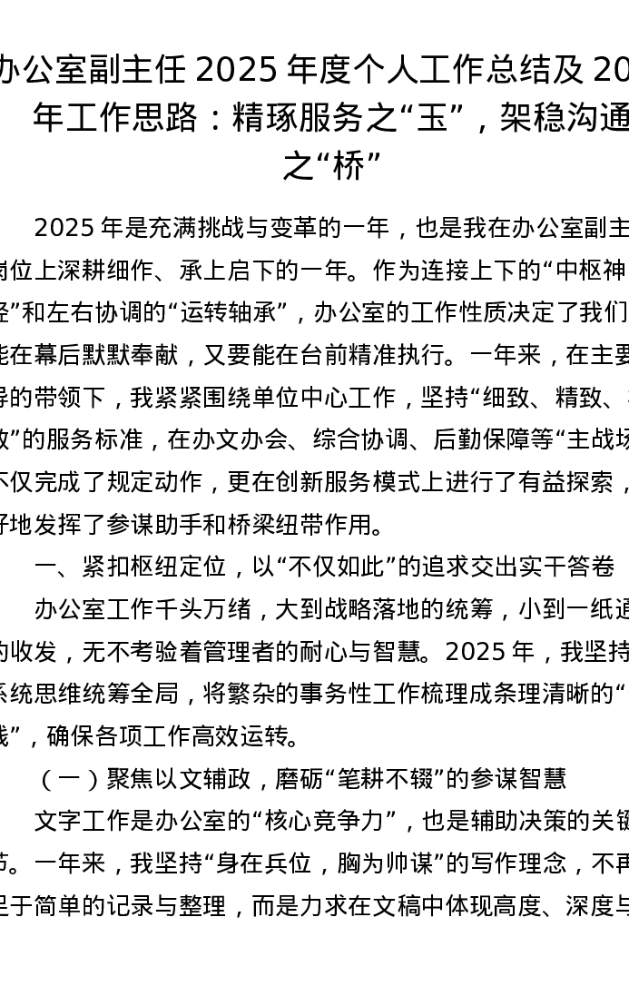 办公室副主任2025年度个人工作总结及2026年工作思路:精琢服务之“玉”,架稳沟通之“桥”