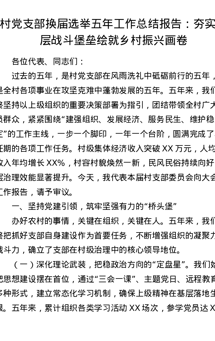 村党支部换届选举五年工作总结报告:夯实基层战斗堡垒 绘就乡村振兴画卷