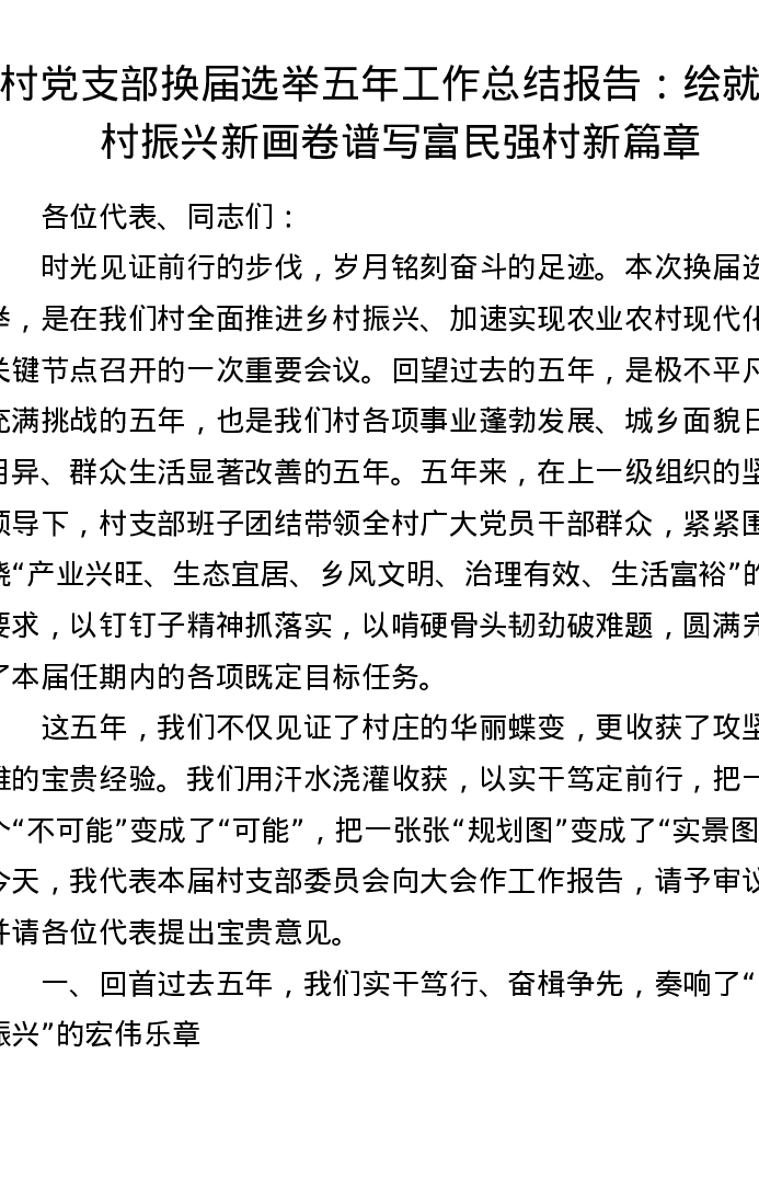村党支部换届选举五年工作总结报告:绘就乡村振兴新画卷 谱写富民强村新篇章