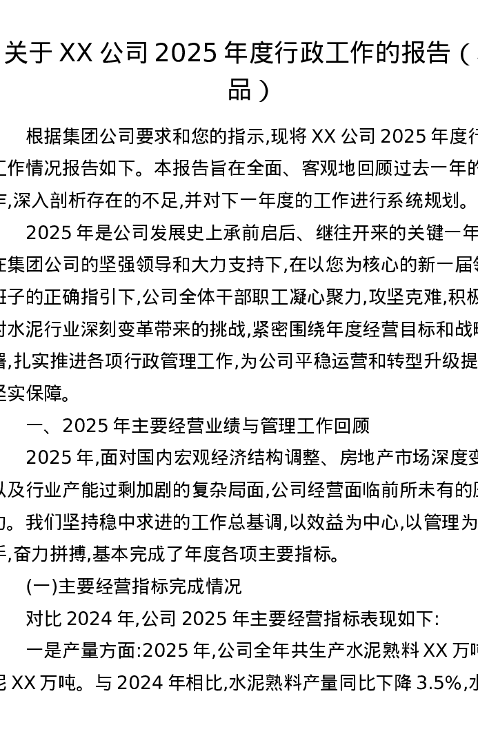 关于XX公司2025年度行政工作的报告