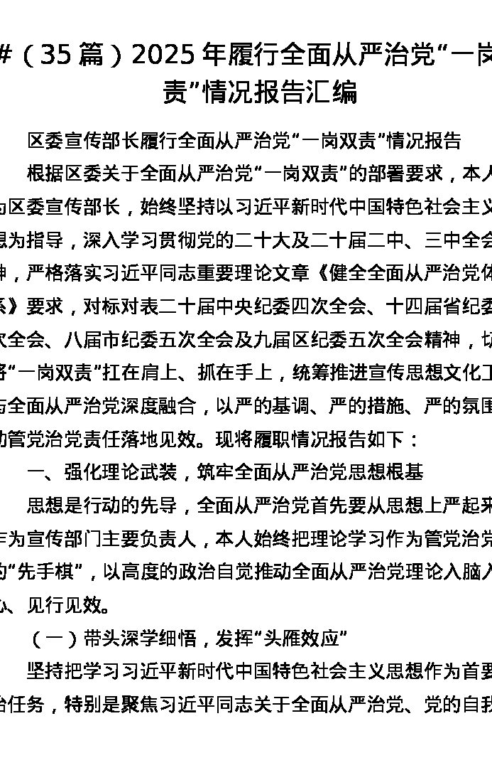 汇编:2025年履行全面从严治党“一岗双责”情况报告35篇