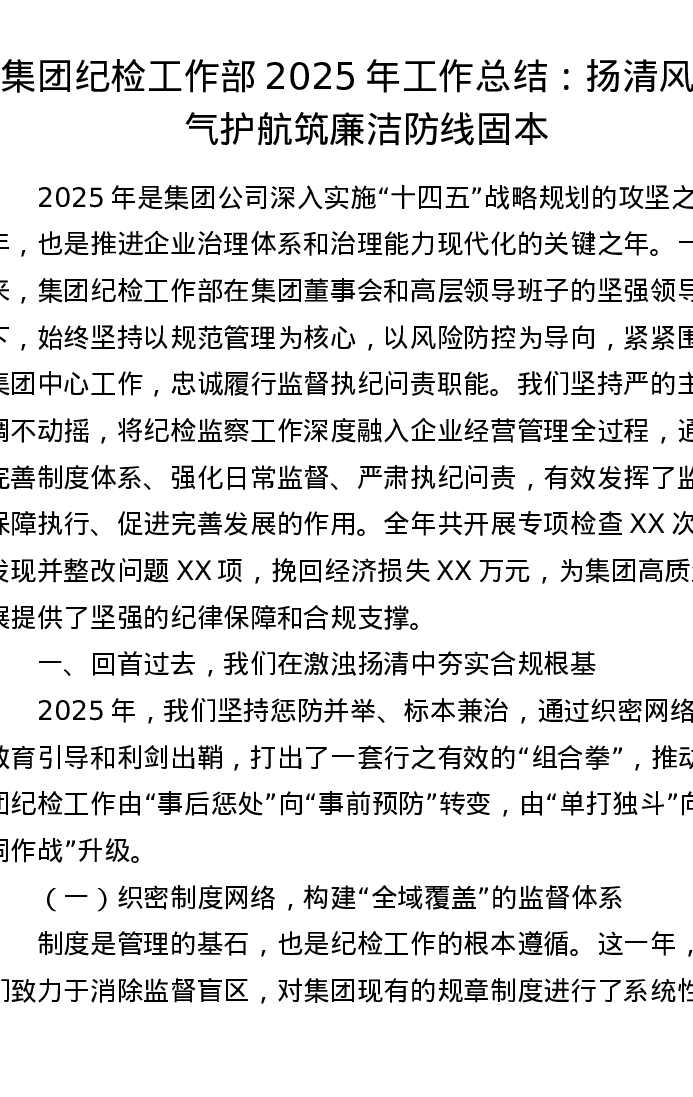 集团纪检工作部2025年工作总结:扬清风正气护航 筑廉洁防线固本