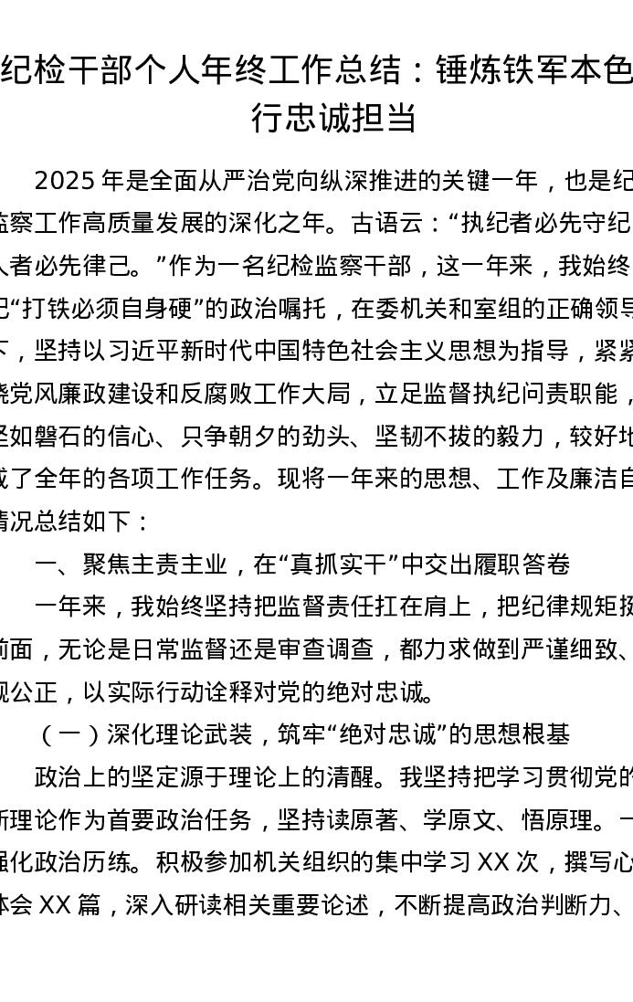 纪检干部个人年终工作总结:锤炼铁军本色 践行忠诚担当