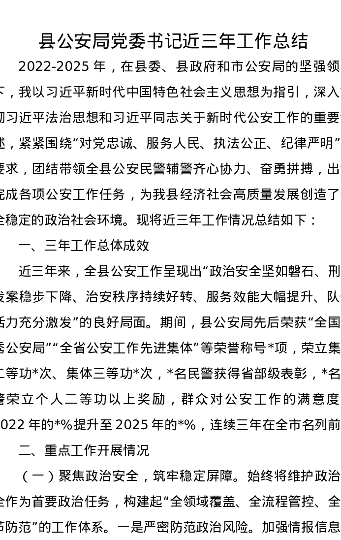 县公安局党委书记近三年工作总结