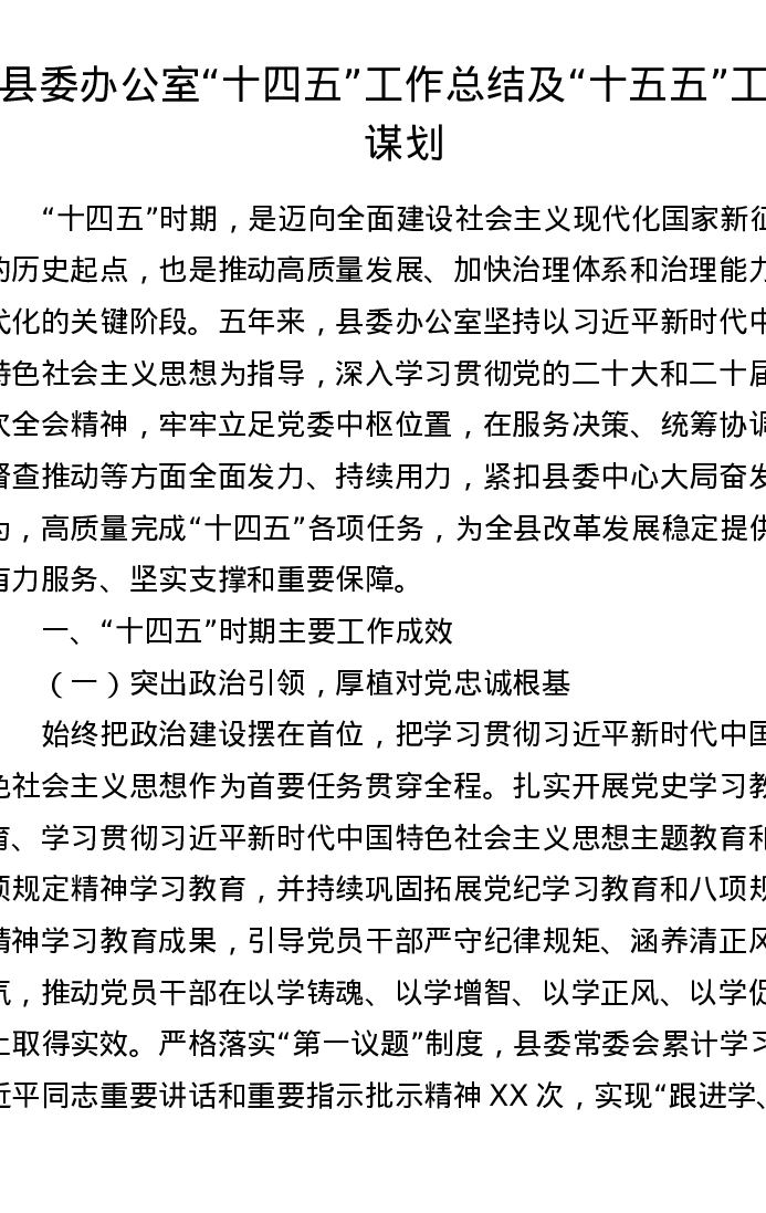 县委办公室“十四五”工作总结及“十五五”工作谋划(3324字)