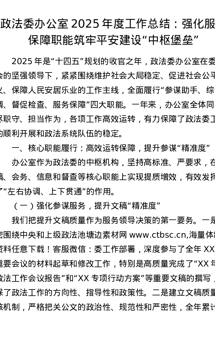 政法委办公室2025年度工作总结:强化服务保障职能 筑牢平安建设“中枢堡垒”