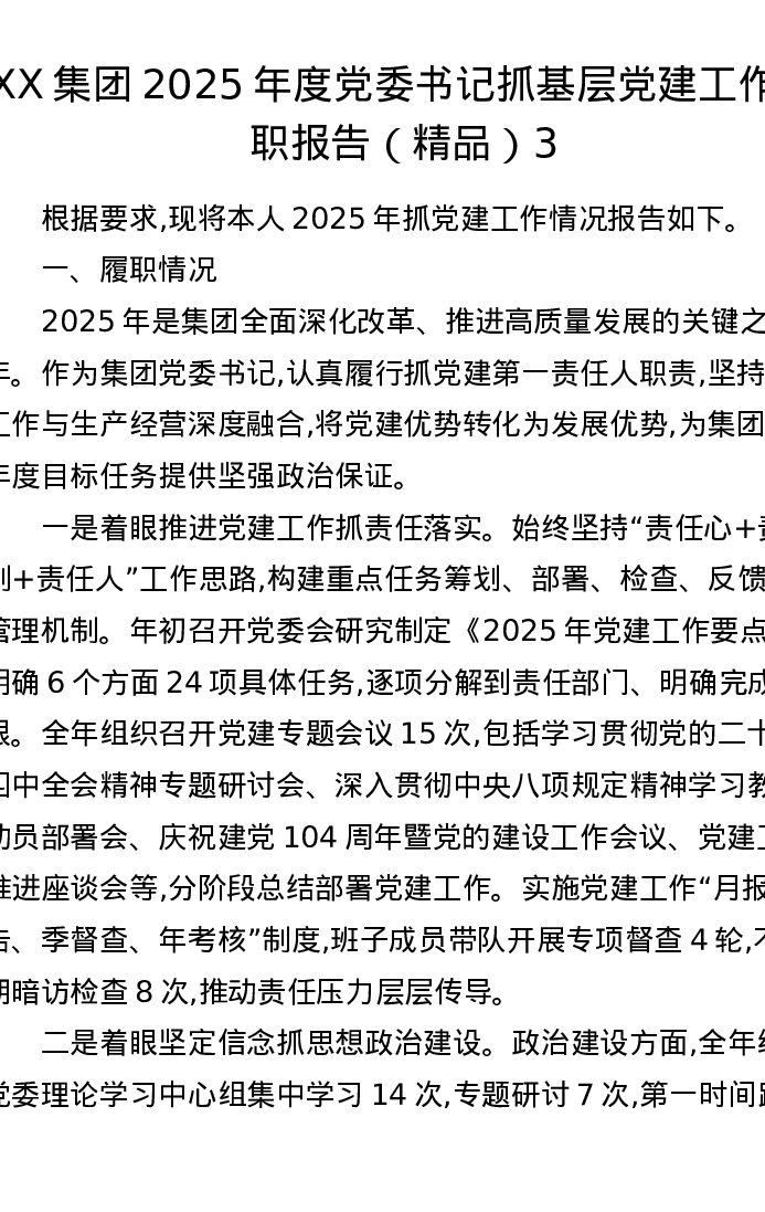 XX集团2025年度党委书记抓基层党建工作述职报告3
