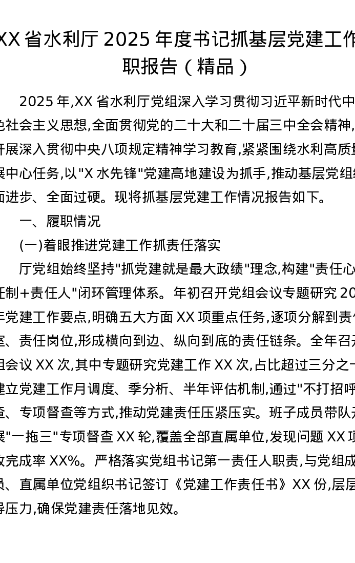 XX省水利厅2025年度书记抓基层党建工作述职报告