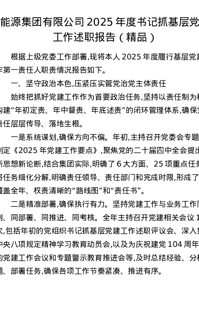 能源集团有限公司2025年度书记抓基层党建工作述职报告