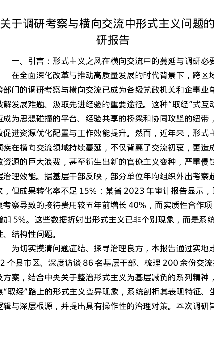 关于调研考察与横向交流中形式主义问题的调研报告
