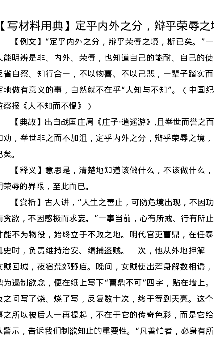 【写材料用典】定乎内外之分,辩乎荣辱之境