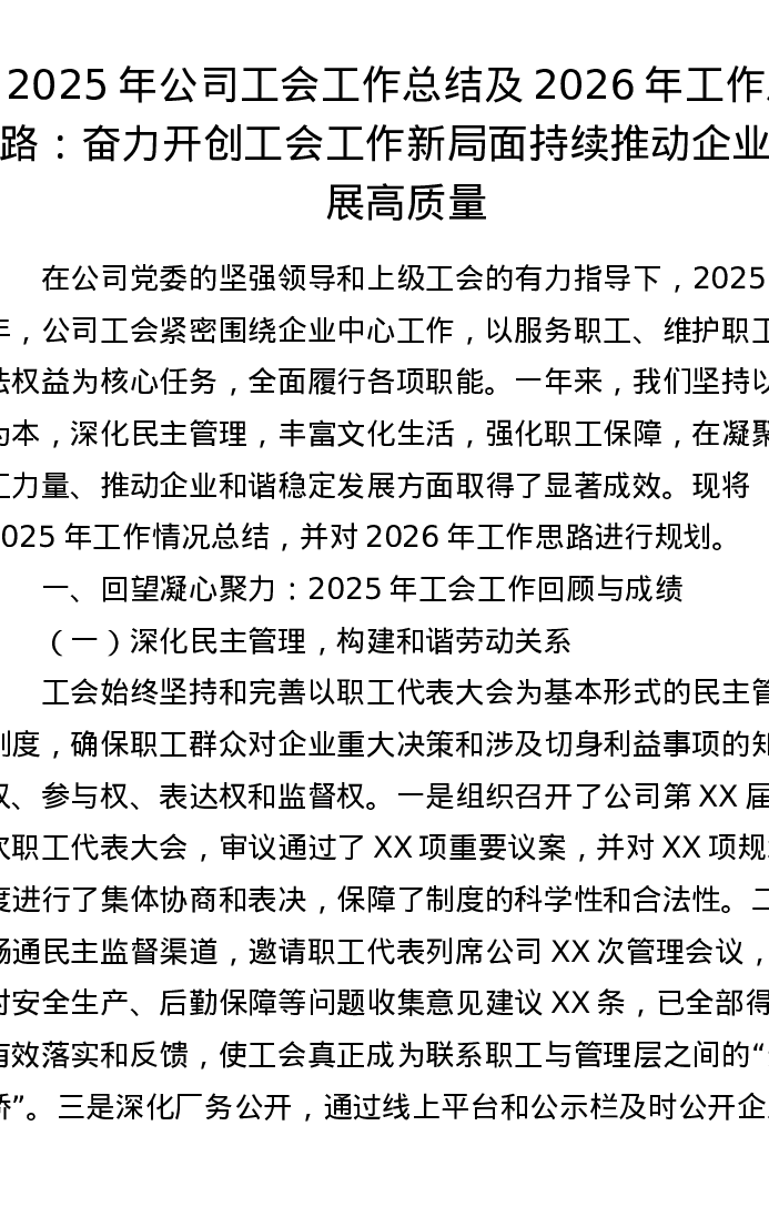 2025年公司工会工作总结及2026年工作思路:奋力开创工会工作新局面 持续推动企业发展高质量