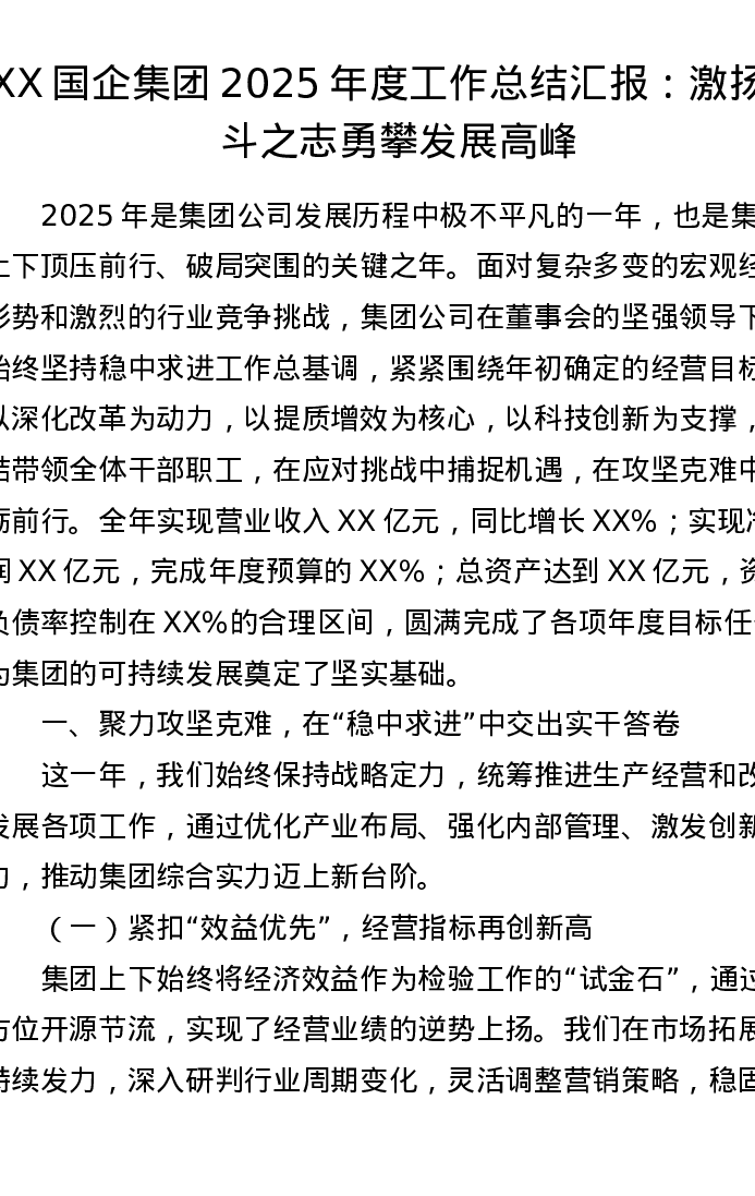 XX国企集团2025年度工作总结汇报:激扬奋斗之志 勇攀发展高峰