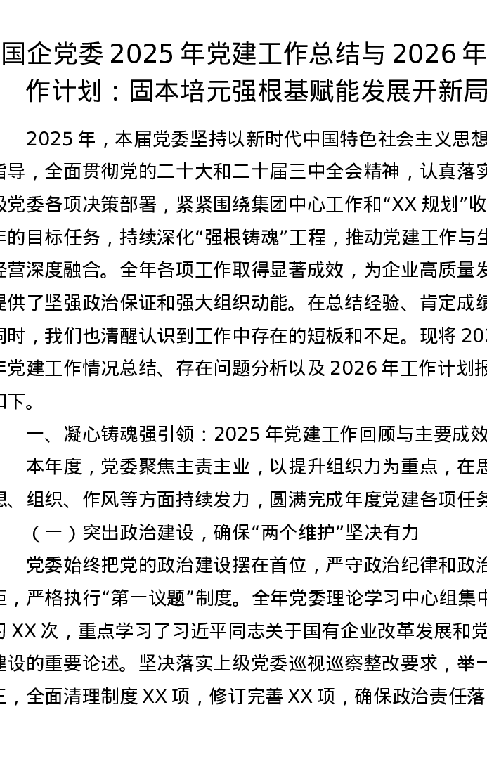 国企党委2025年党建工作总结与2026年工作计划:固本培元强根基 赋能发展开新局