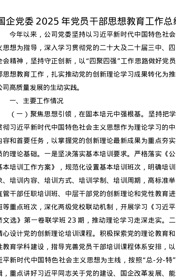 国企党委2025年党员干部思想教育工作总结