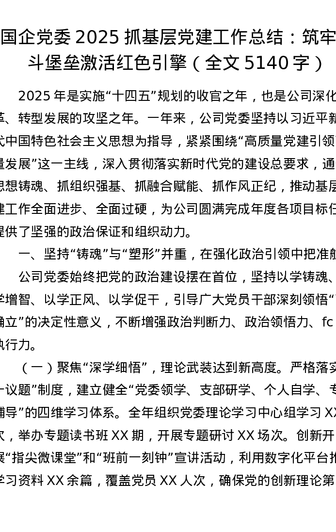 国企党委2025抓基层党建工作总结:筑牢战斗堡垒 激活红色引擎(全文5140字)